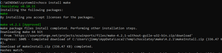 - Install the make package under chocolatey tool (run the command prompt terminal as administrator right)