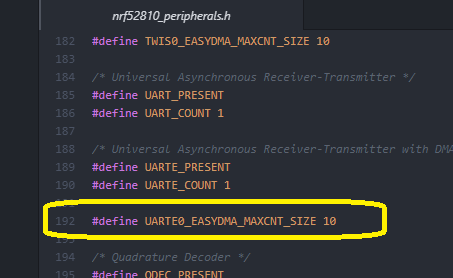 All information Length of UARTE DMA can be found at SDK folder SDK\modules\nrfx\mdk.