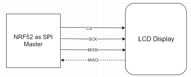 For the LCD display application, the nRF52 acts as the SPI master role and connects as below through SPI interface.