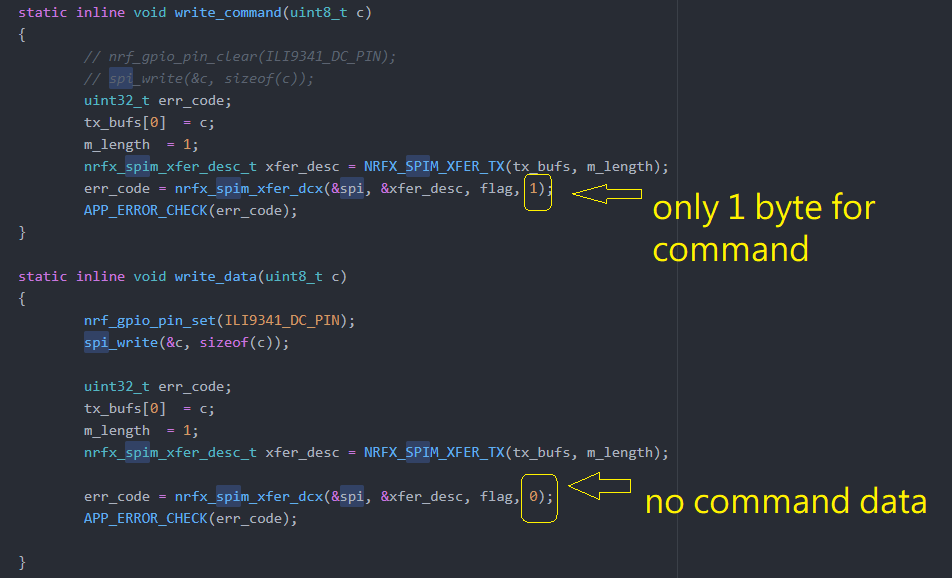 For the 2nd case, it has the additional DCX/DC pin for the LCD display. This pin is introduced on the NRF52840. (SPIM3 — high speed SPI bus). It can use to further improve the data transmission speed.