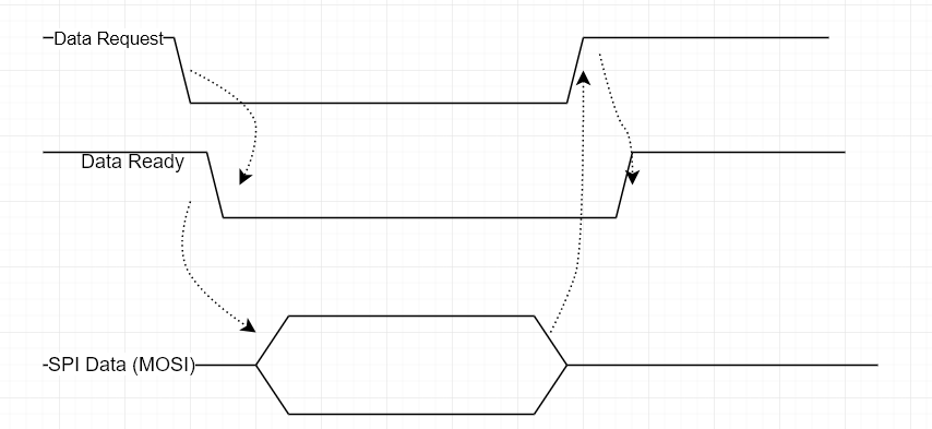 In order to use the NRF52 as SPI slave mode, it needs to add extra GPIO pin in order to data request from slave to master.