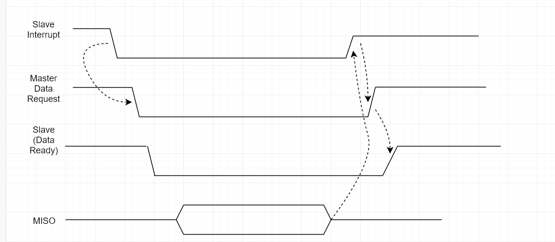For the below configuration, it uses additional 3 GPIO pins to communicate with SPI interface. It can use to wake up the SPI Master / Slave from sleep mode in order to save current consumption.