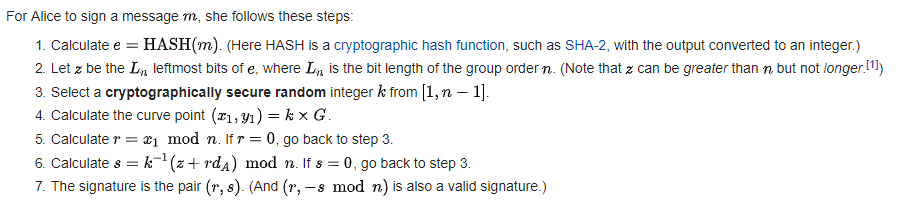 - Elliptic Curve Digital Signature Algorithm (ECDSA)