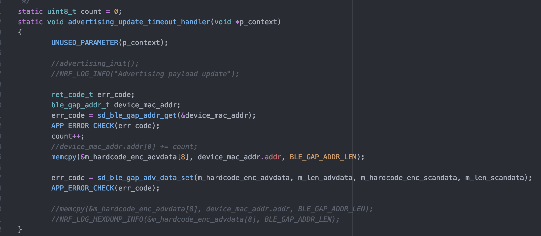 This blog is to show how to modify the advertising payload from time to time instead of stop / restart the advertising module.