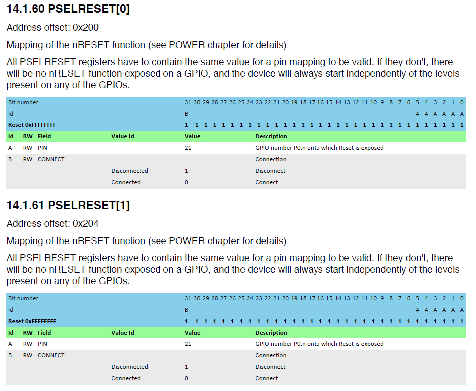 | 0x200 | PSELRESET[0] | Mapping of the nRESET function |