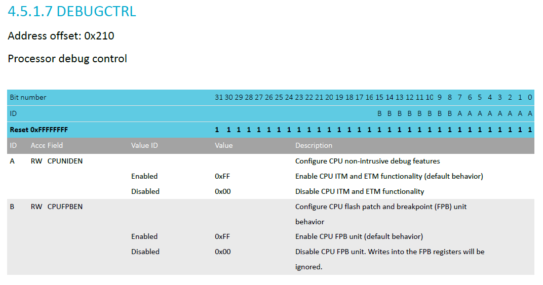| 0x210 | DEBUGCTRL (nRF52840 only) | Processor debug control |
