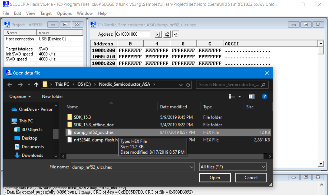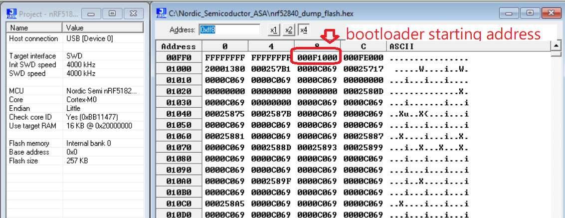Read the specify address through nrfjprog tool