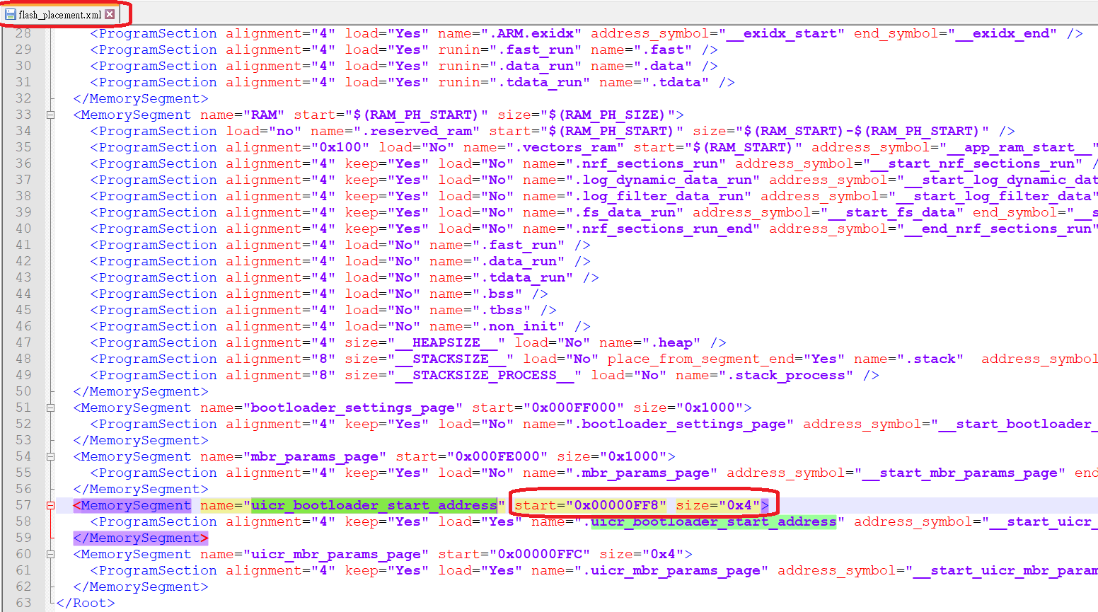 Bootloader Starting address (difference from OLD SDK). It is not stored at the UICR 0x10001014.