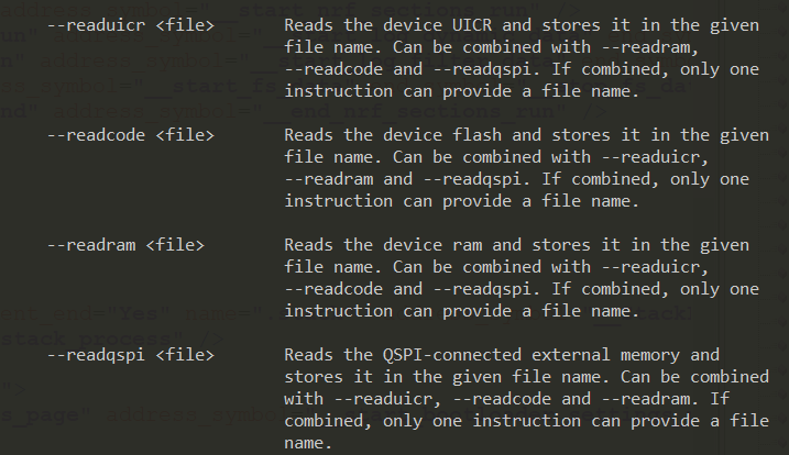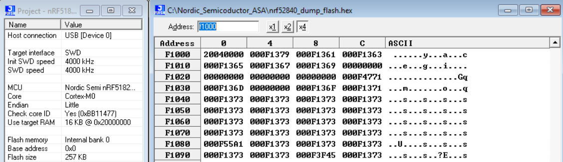 - Dump entire flash such as 512KB flash from nRF52832