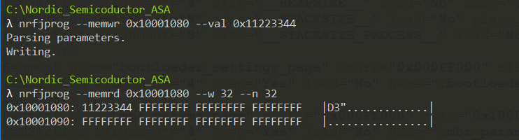 Write data on the address through nrfjprog