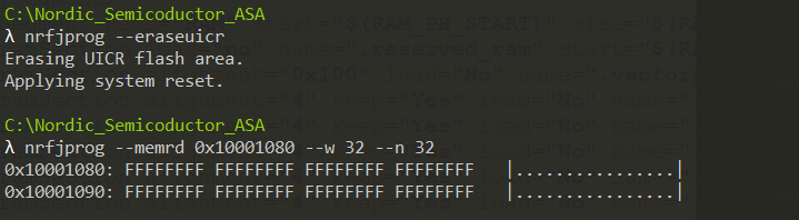 - How to write / read / erase on the UICR by using the nrfjprog
