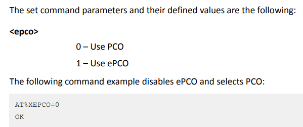 Usage of ePCO/PCO in PDN connection establishment %XEPCO (depend on the operator)