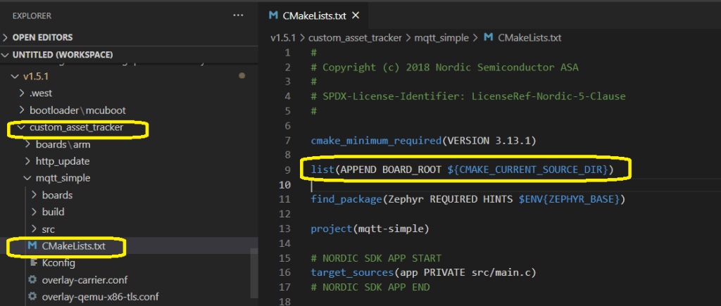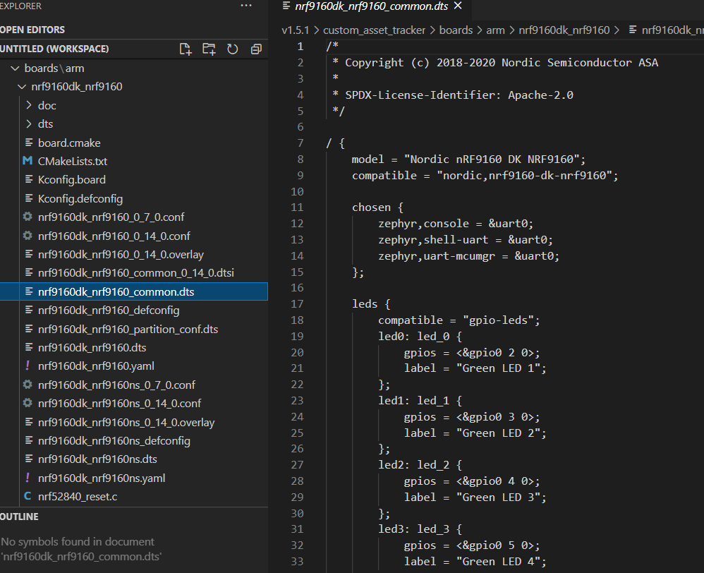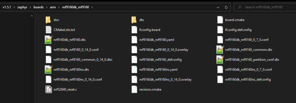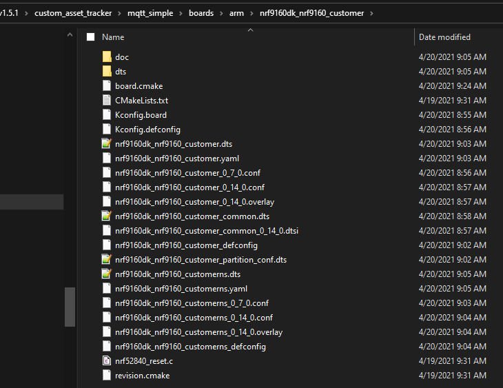 In this blog, nrf9160dk_nrf9160 would be used as the example and modify for the customer board (place at the local folder).