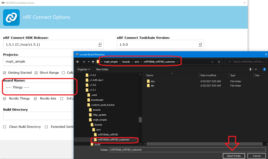 Select the local board folder of the nRF9160dk_nrf9160_customer
