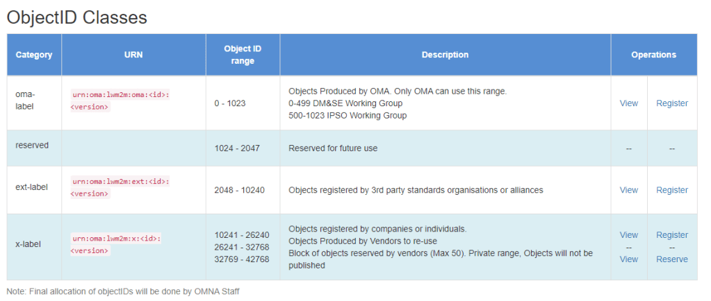 - The OMA Guidelines for the Creation and Registration of LwM2M Objects & Resources can be found here: Guidelines