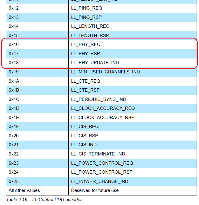 Basically, you can find different PHYs on advertising type in the following table 2.3.