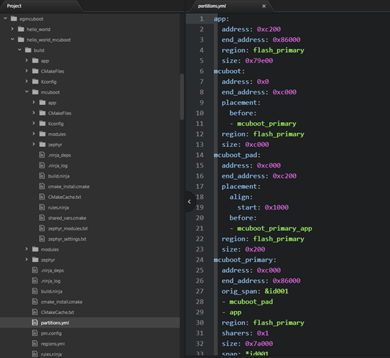 boot_partition: for MCUboot itselfimage_0_primary_partition: the primary slot of Image 0image_0_secondary_partition: the secondary slot of Image 0scratch_partition: the scratch slot