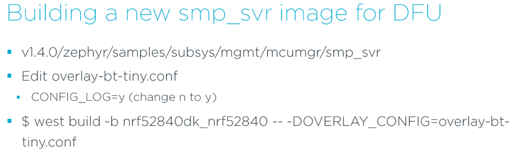 Hi Jimmy, for the “building a new smp_svr image for DFU and uploading via Device Manager”.