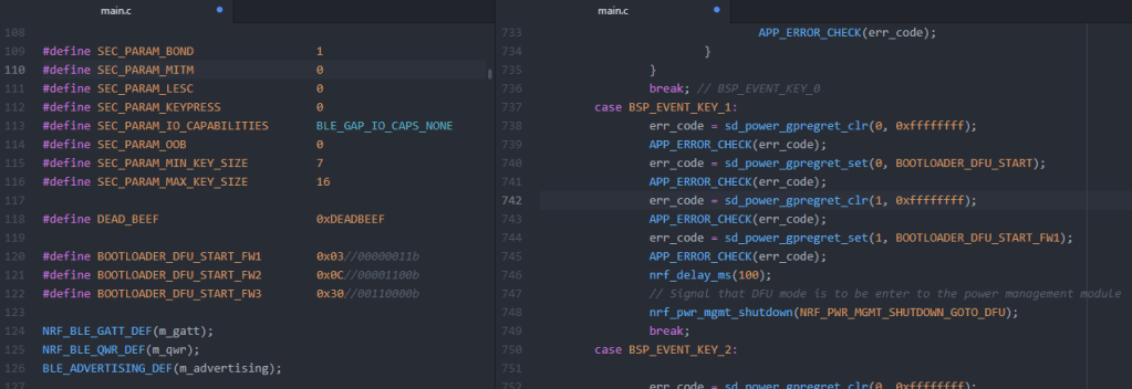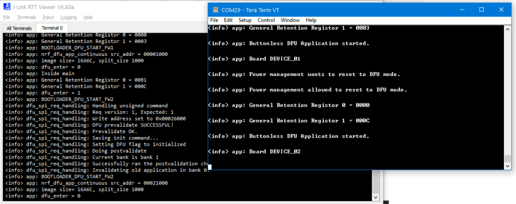 • Button 2 – Device 01 (ble_app_buttonless_01.hex)