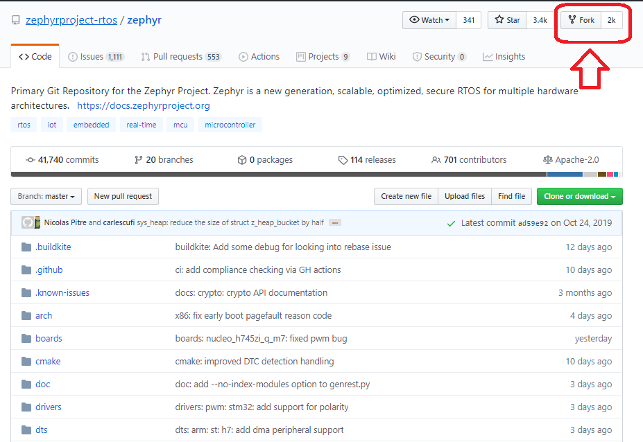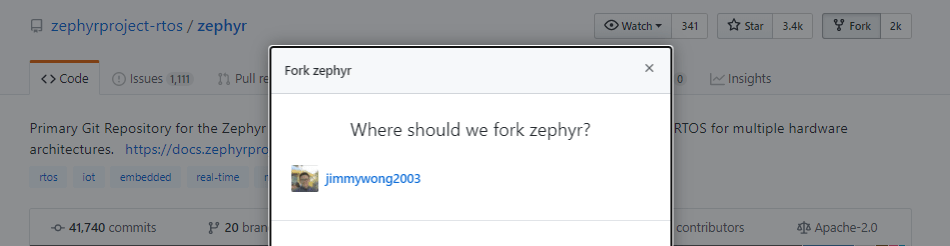 How to fork the zephyr repository on the own github (if you haven’t forked the repository)