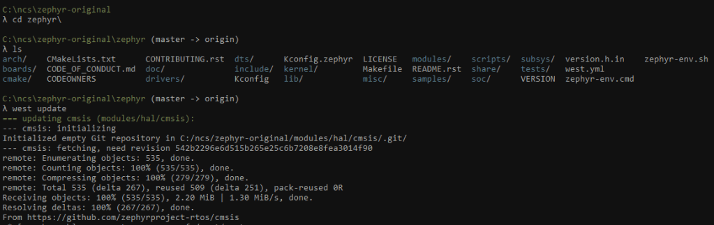 Initialize west and clone the nRF Connect SDK manifest repository nrf: