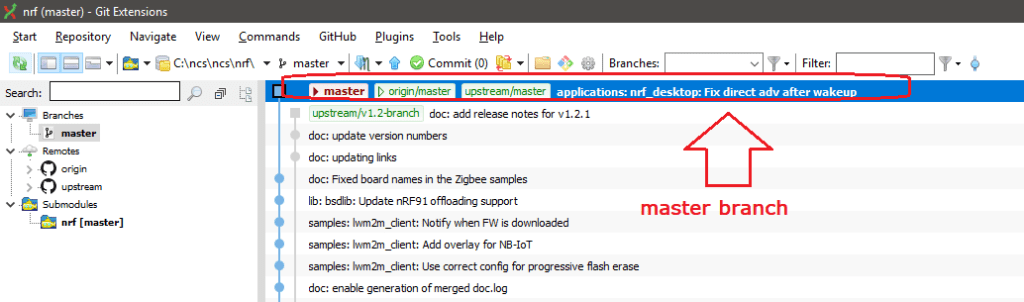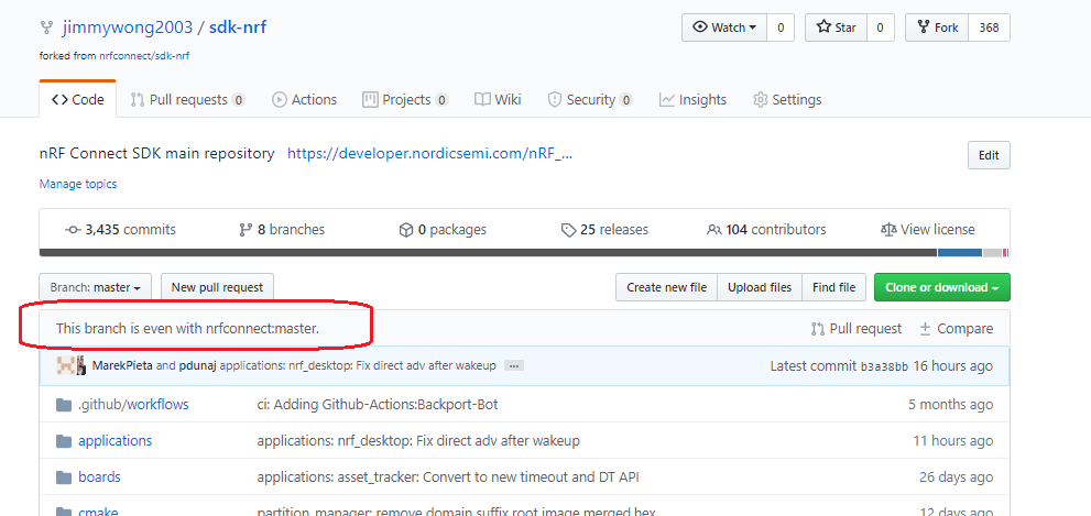 You would see the github branch to sync with nrfconnect:master.