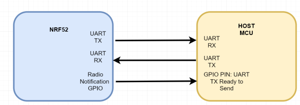 Since the BLE radio has the highest priority, the communicated protocol on the software UART should be avoided during the radio activity. The most straightforward approach is to use an additional handshaking gpio pin to indicate the external MCU about the status of the radio activity.