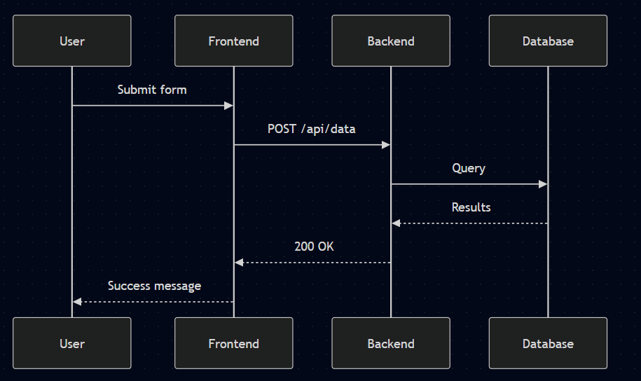 When you preview this in VS Code, you’ll see a professional-looking sequence diagram showing the flow of a form submission process.