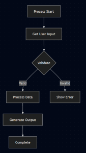 Start[Process Start] –> Input[Get User Input]